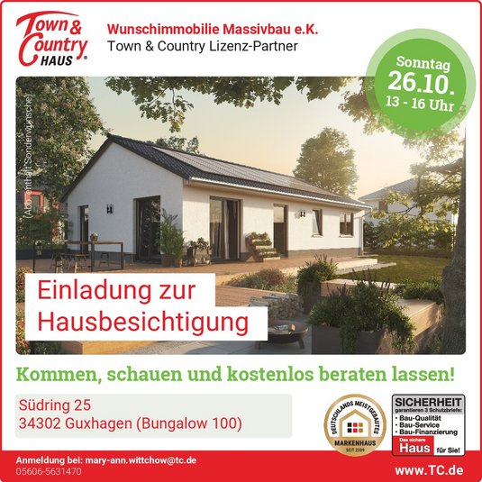 Wir beraten Sie gerne zum Hausbau. Ihr Team von Wunschimmobilie Massivbau e.K., Lizenzpartner von Town & Country Haus für Kassel, den Kreis Kassel,…