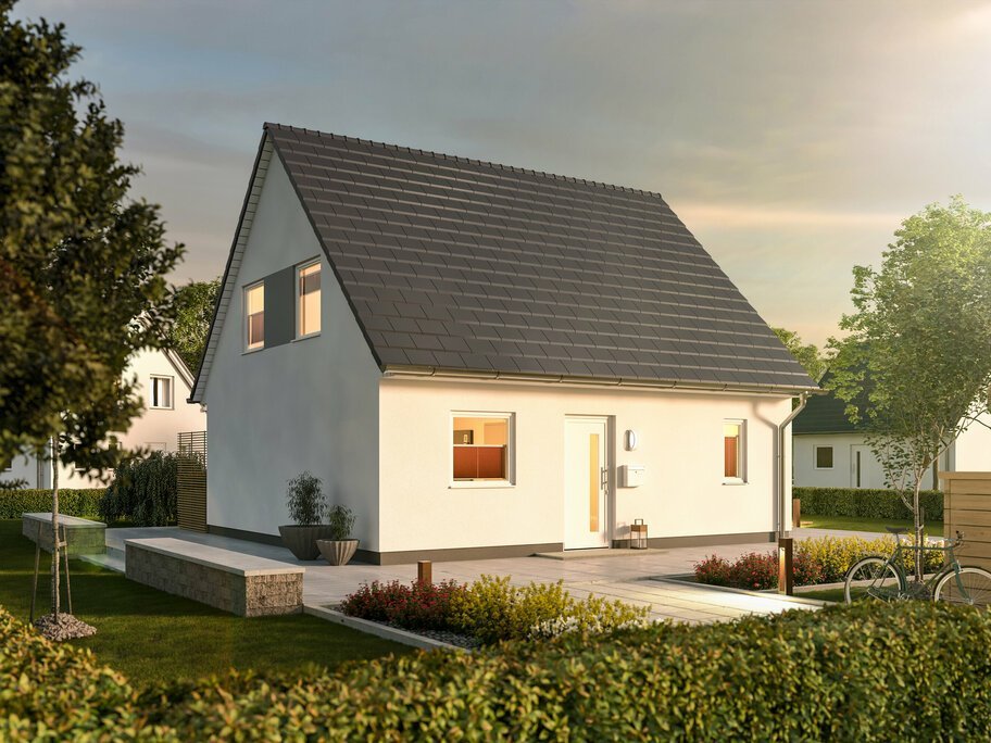 Hier können Sie sicher leben. Der Name „Flair 110“ steht für 110 Quadratmeter Wohnerlebnis: Ein Blickfang sind die bodentiefen Fenster, die den Wohnbereich mit viel Licht durchfluten. Hell, gemütlich und weitläufig – genügend Raum zum Entfalten im ganzen Haus. Wohnzimmer und Essbereich sind miteinander verbunden und die geräumige Küche wird schnell zum beliebten Familientreffpunkt. Bei Bedarf, zum Beispiel für das Büro zu Hause, kann im Erdgeschoss noch ein weiteres Zimmer eingeplant werden.