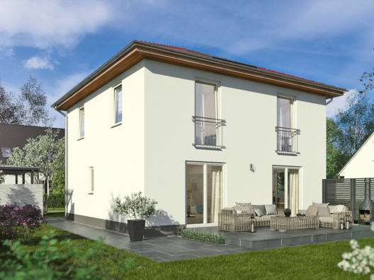 Stadthaus Flair 124 - Das Stadthaus zum Wohlfühlen – Komfort und Design perfekt kombiniert Das urbane Familienhaus. Die kubische Form ist der Klassiker im Stadthausdesign und prägt auch das Aussehen unseres Stadthaus Flair 124. Im Inneren setzt sich der urbane Stil fort: der großzügige Wohn- und Essbereich erstreckt sich über die gesamte Hausbreite und ist das Herzstück des Hauses. Große Fenster lassen viel Tageslicht hinein und führen gleich hinaus zu Ihrem Wohnzimmer im Grünen – der Terrasse.