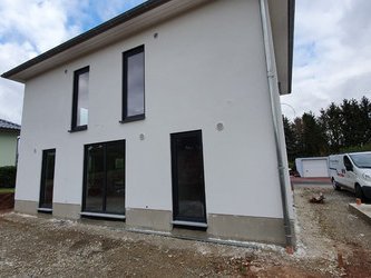 Auch das Obergeschoss zeigt sich im gradlinigen Baustil des Hauses. Hier finden Sie drei Zimmer, die Sie nach Ihren Vorstellungen als Schlaf-, Kinder- oder Gästezimmer nutzen können. Große Fenster lassen auch hier viel Tageslicht hineinströmen. Die Ankleide im Schlafzimmer bietet viel Stauraum.